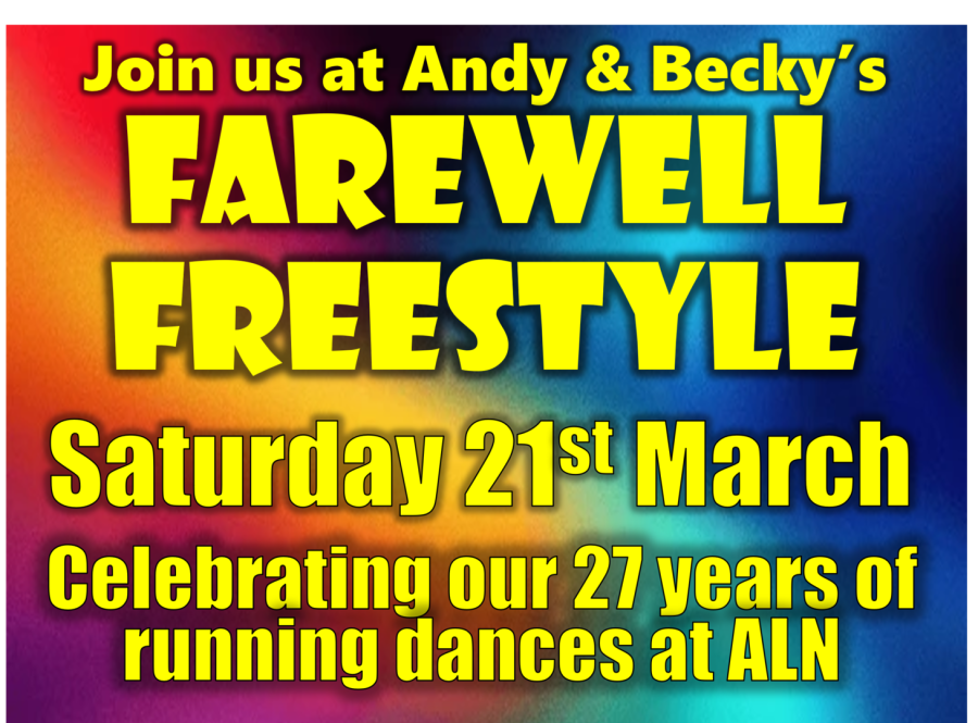 Our final freestyle will be in March, marking an incredible 27 years of ALN dance nights. From April, Kev & Sarah will keep ALN dance nights going — same format, same dates… and yes, still cake!